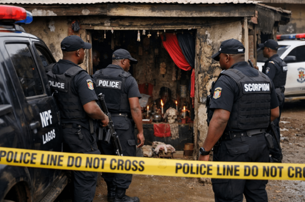 Lagos police uncovered a fake shrine in Idimu, arrest suspects linked to kidnapping and other dubious activities.