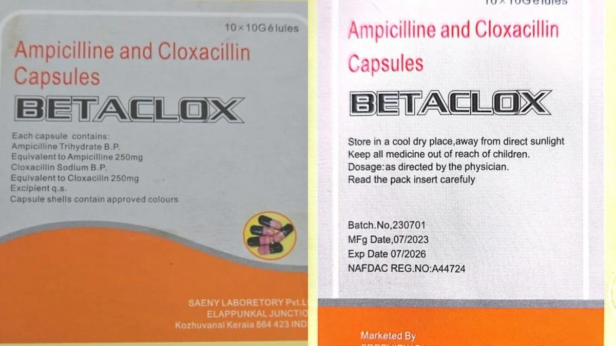 NAFDAC warns Nigerians about a fake BETACLOX antibiotic with falsified details circulating in the market.