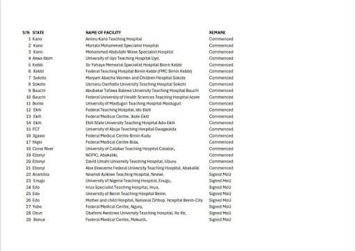 FULL LIST: Nigerian Government approves Free Treatment for Pregnant Women in 154 Hospitals, 18 Centres for VVF Surgeries