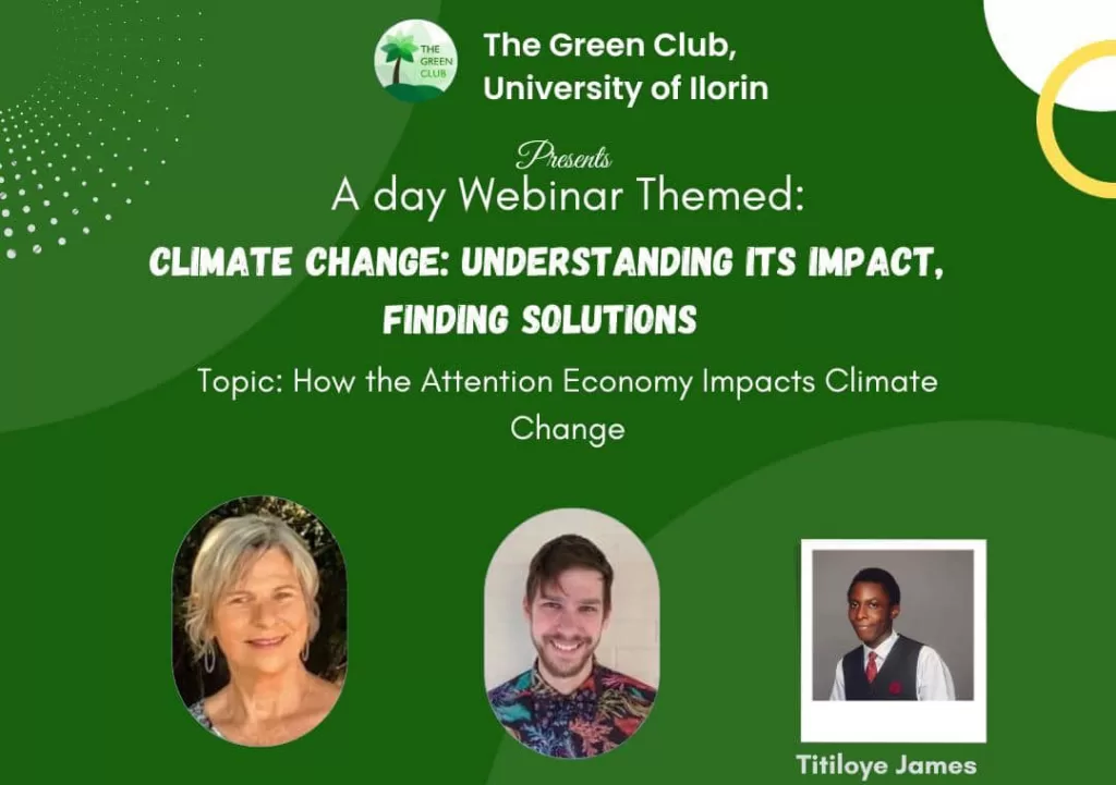 The Green Club at the University of Ilorin is set to host an enlightening webinar on climate change, focusing on the critical topic of “How the Attention Economy Impacts Climate Change.”