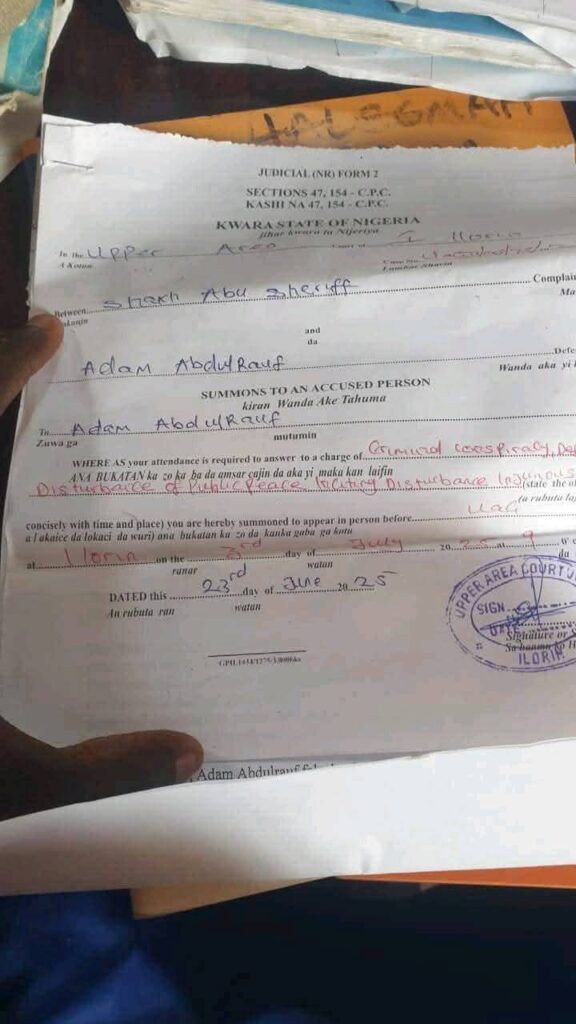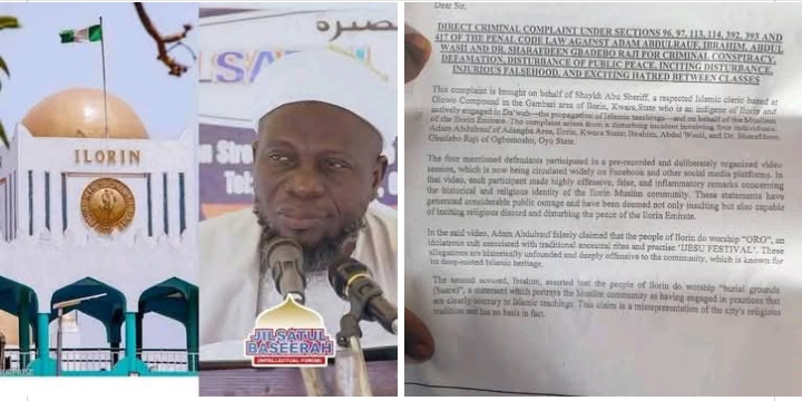 Dr. Sharafdeen Gbadebo Raji, an Ogbomoso-based Islamic cleric, alongside Adam Abdulrauf, popularly known as Alfa Adam Adangba, and two others identified as Ibrahim and Abdul Wasii, are facing a direct criminal complaint before the Upper Area Court 3, Pake, Ilorin, over allegations of defamation and incitement stemming from a controversial video circulating on social media.