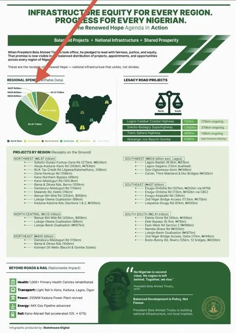 “This is the equity of Renewed Hope. No Nigerian is second class, no region is left behind. Together we will rise as one nation, one people, and one destiny.