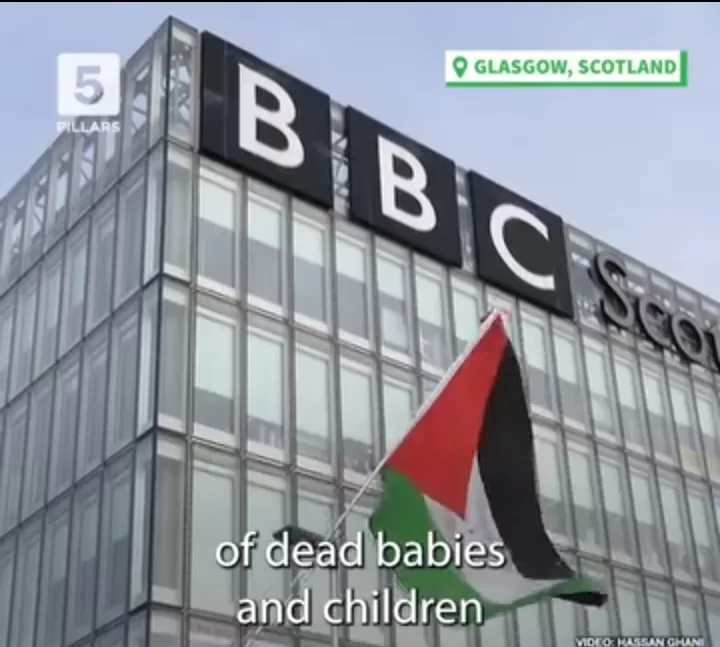 Hamidat Kelani reports – Thousands of Glascow Scotland rallied at BBC office in Scotland, the BBC is regarded as a complicit in the ongoing mass murder of civilians at Gaza strip of Palestine.