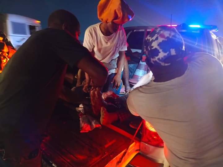 Reports came in that some people were trapped in the accident involving a loaded truck, danfo (a privately-owned minibus or van hired to carry passengers) and a car.
