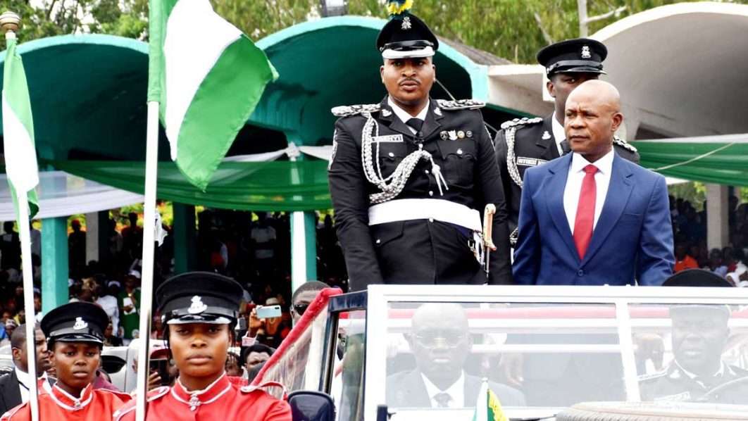 Enugu State Governor, Peter Mbah (left), inspecting the parade during the governor’s inauguration in Enugu…yesterday.