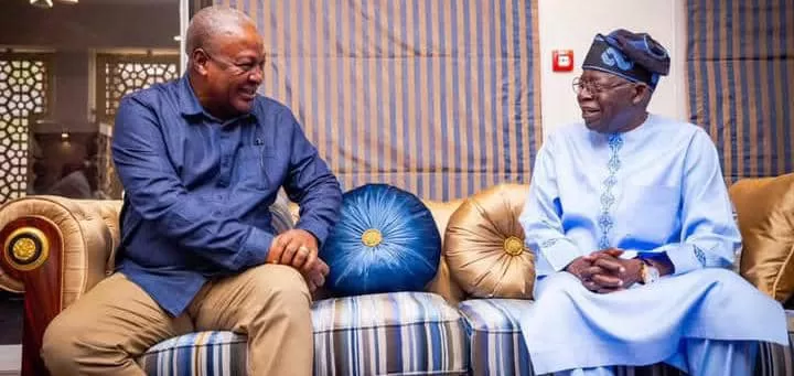 During his inauguration address, Ghanaian President John Mahama goofed after mistakenly addressed Nigerian president Bola Tinubu as the “President of Ghana.”