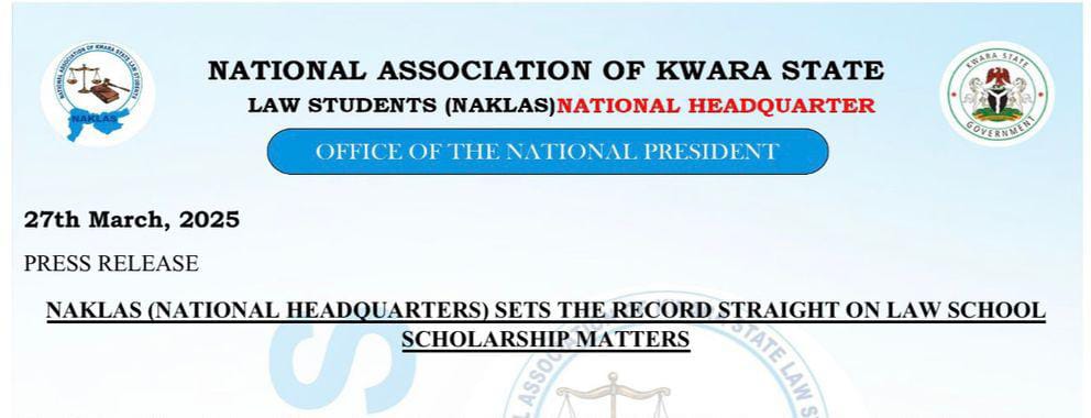 The National Association of Kwara State Law Students (NAKLAS NHq) has clarify its stance on law school scholarships.